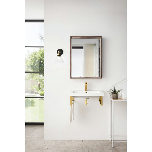 Two Boston 15 1/4" Wall Brackets, Radiant Gold w/20" White Glossy Composite Top