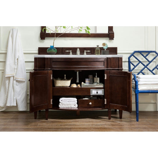 Brittany 46" Single Vanity, Burnished Mahogany w/ 3 CM Classic White Quartz Top