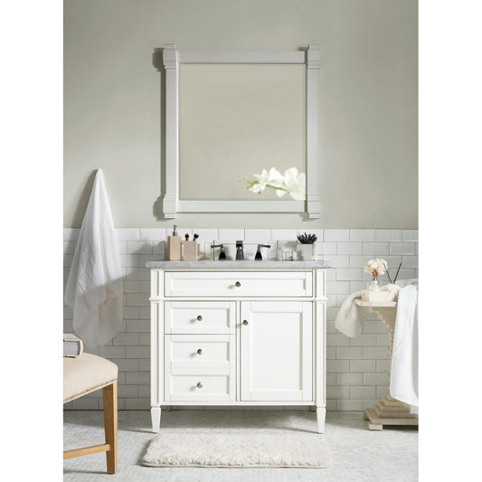 Brittany 36" Bright White Single Vanity w/ 3 CM Carrara Marble Top
