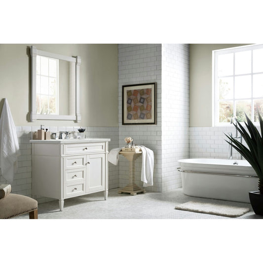 Brittany 36" Bright White Single Vanity w/ 3 CM Eternal Jasmine Pearl Quartz Top