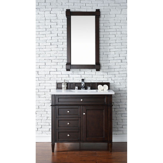 Brittany 36" Burnished Mahogany Single Vanity w/ 3 CM Classic White Quartz Top