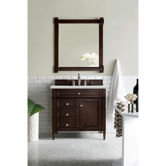 Brittany 36" Burnished Mahogany Single Vanity w/ 3 CM Carrara Marble Top