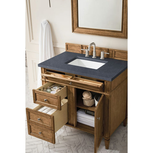 Brittany 36" Saddle Brown Single Vanity w/ 3 CM Charcoal Soapstone Quartz Top