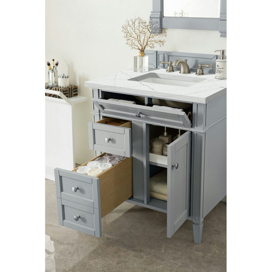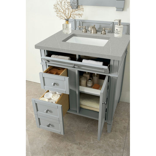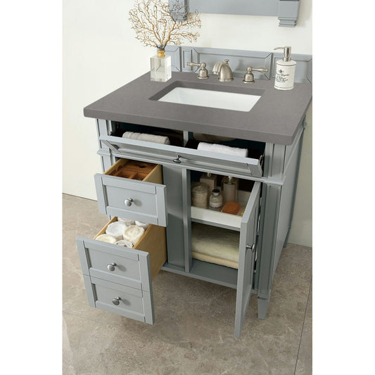 Brittany 30" Single Vanity, Urban Gray, w/ 3 CM Eternal Serena Quartz Top