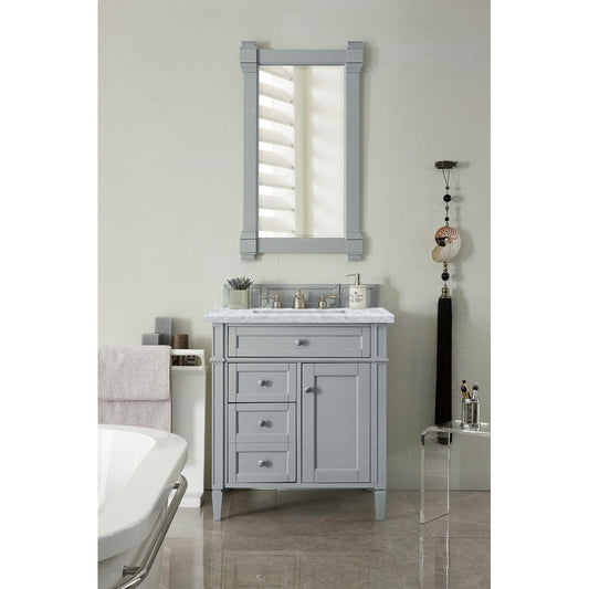 Brittany 30" Single Vanity, Urban Gray w/ 3 CM Carrara Marble Top