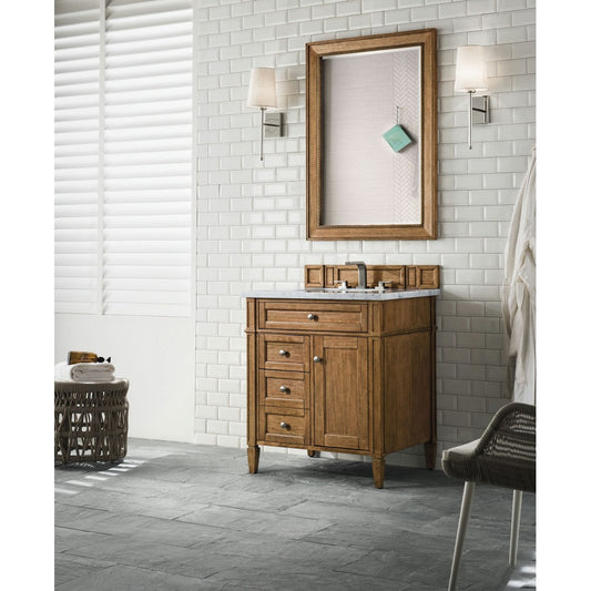 Brittany 30" Single Vanity, Saddle Brown w/ 3 CM Carrara Marble Top