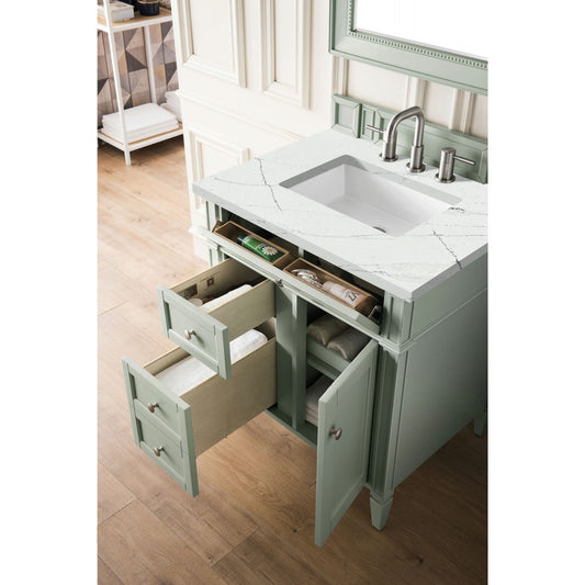 Brittany 30" Single Vanity, Sage Green, w/ 3 CM Eternal Serena Quartz Top