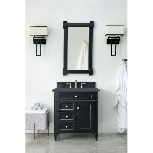 Brittany 30" Single Vanity, Black Onyx, w/ 3 CM Gray Expo Quartz Top