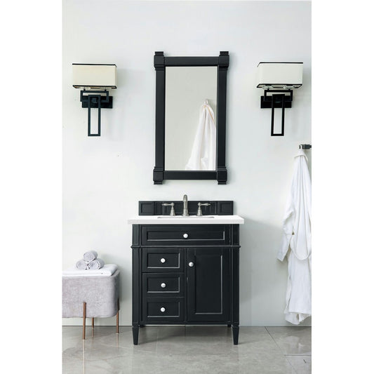 Brittany 30" Single Vanity, Black Onyx, w/ 3 CM Classic White Quartz Top
