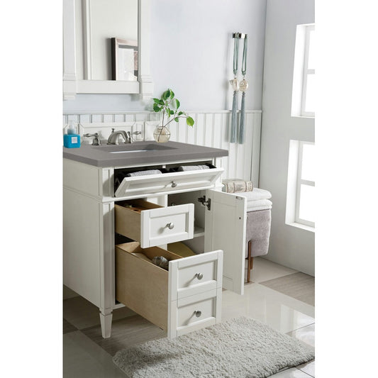 Brittany 30" Single Vanity, Bright White, w/ 3 CM Gray Expo Quartz Top