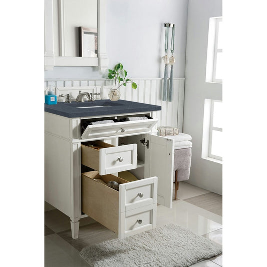Brittany 30" Single Vanity, Bright White, w/ 3 CM Charcoal Soapstone Quartz Top