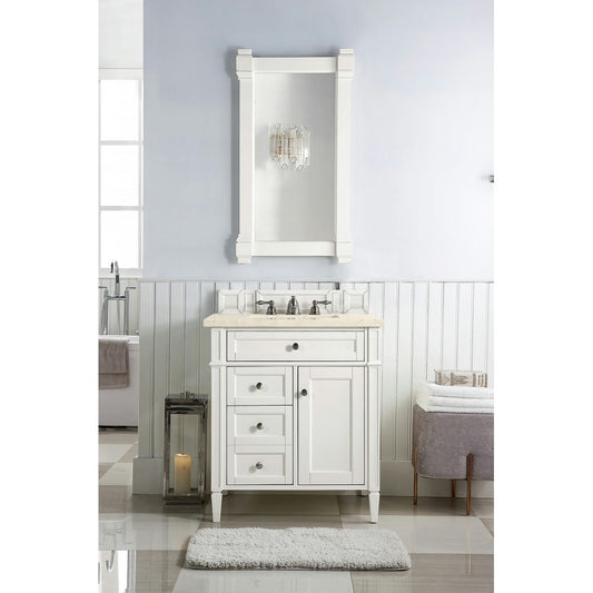 Brittany 30" Single Vanity, Bright White, w/ 3 CM Eternal Marfil Quartz Top