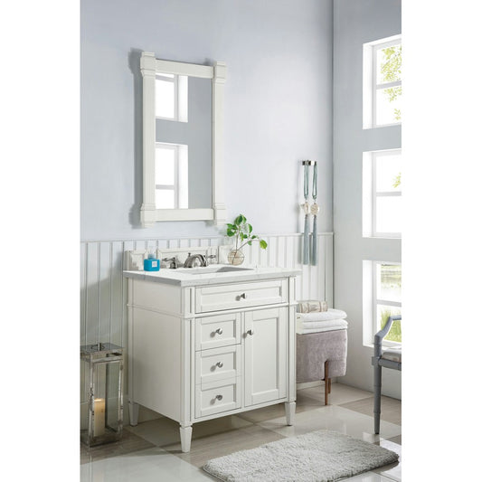 Brittany 30" Single Vanity, Bright White, w/ 3 CM Eternal Serena Quartz Top