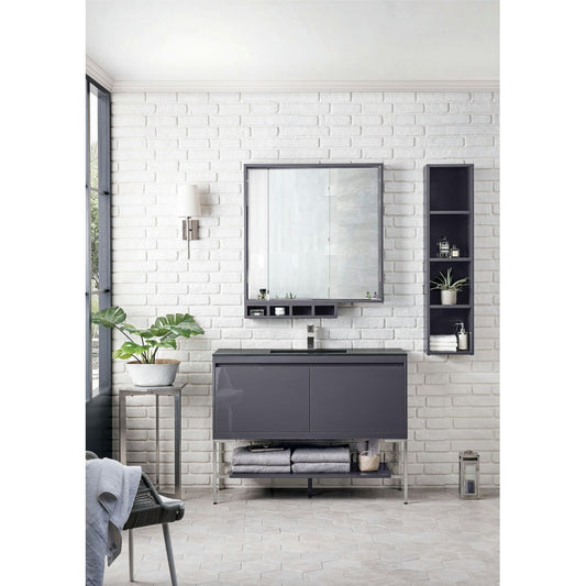Milan 47.3" Single Vanity Modern Gray Glossy Nickel w/Glossy White Composite Top