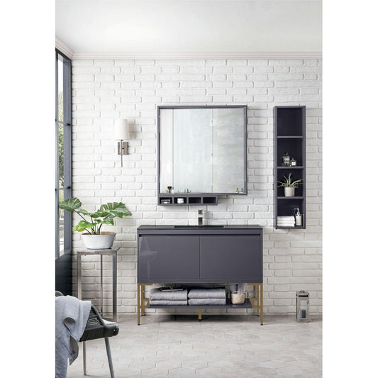 Milan 47.3" Single Vanity Modern Gray Radiant Gold, Charcoal Black Composite Top