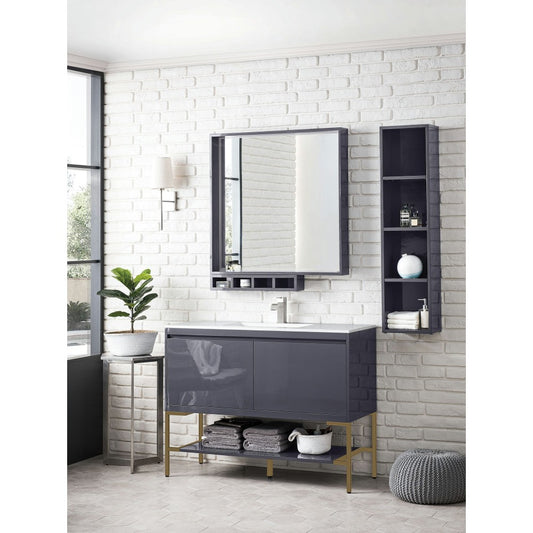 Milan 47.3" Single Vanity Modern Gray Radiant Gold w/ White Composite Top
