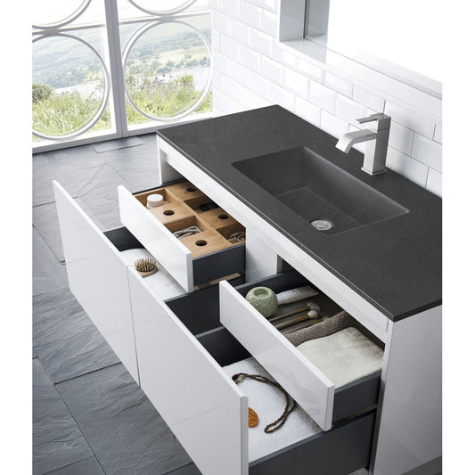 Milan 47.3" Single Vanity Glossy White Black w/Charcoal Black Composite Top