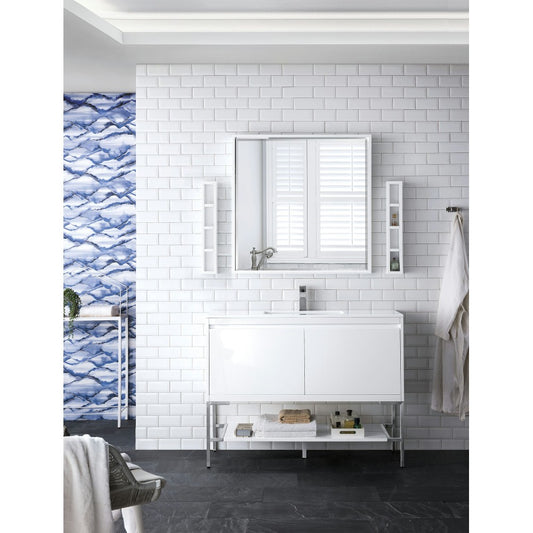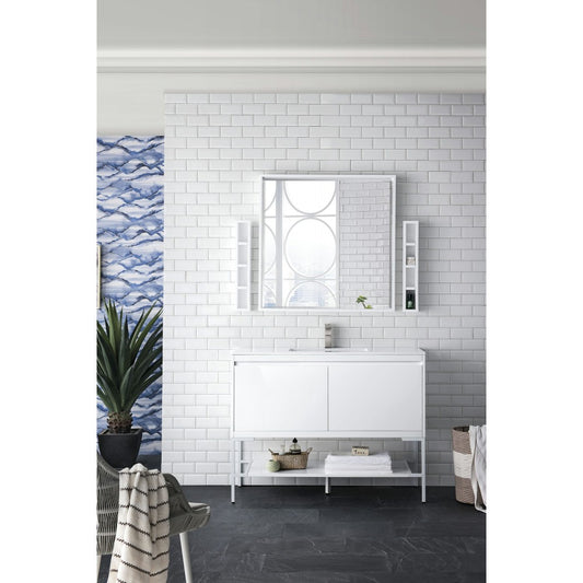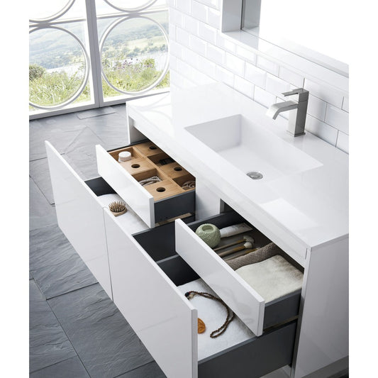 Milan 47.3" Single Vanity Cabinet, Glossy White w/Glossy White Composite Top