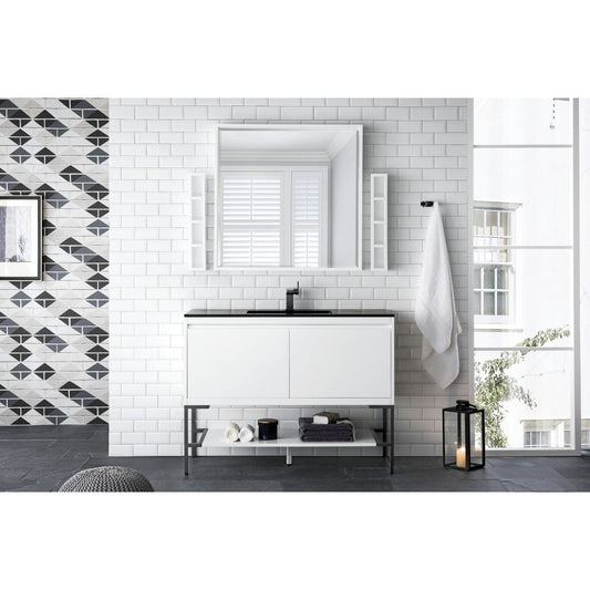 Milan 47.3" Single Vanity Glossy White Matte Black w/Glossy White Composite Top