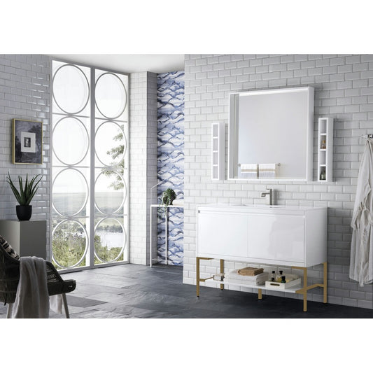 Milan 47.3" Single Vanity Glossy White Radiant Gold w/Glossy White Composite Top