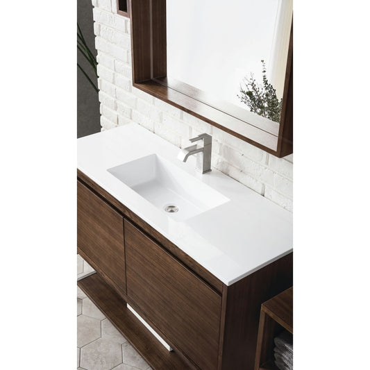 Milan 47.3" Single Vanity Mid Century Walnut White w/ White Composite Top