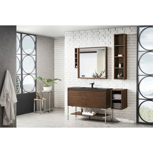 Milan 47.3" Single Vanity Mid Century Walnut Nickel w/ Black Composite Top