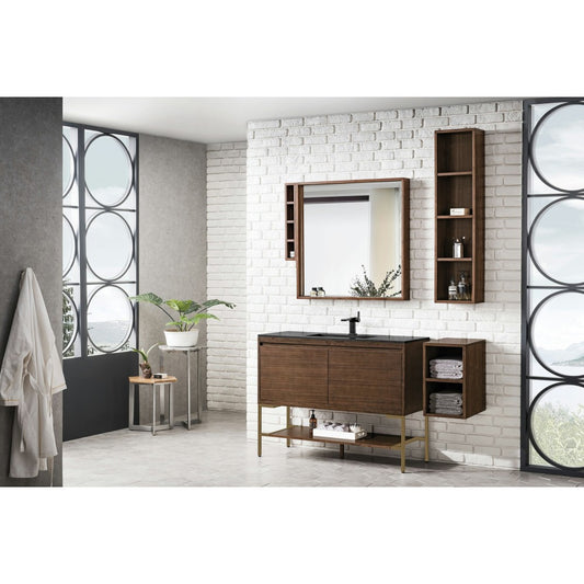 Milan 47.3" Single Vanity Mid Century Walnut Radiant Gold w/ Black Composite Top
