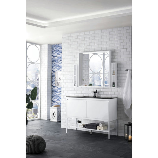 Milan 47.3" Single Vanity Cabinet, Glossy White w/Charcoal Black Composite Top