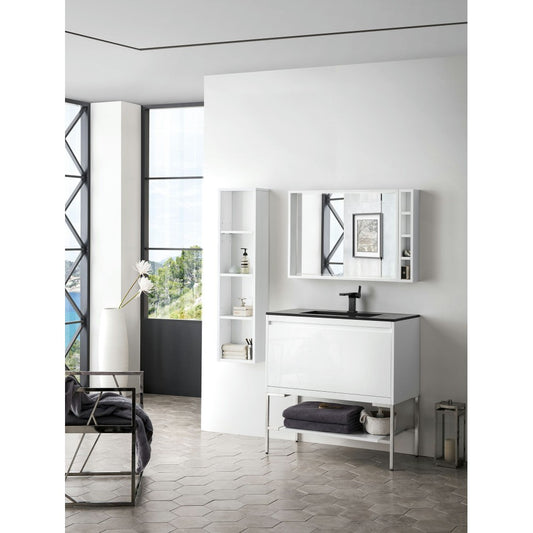 Milan 35.4" Single Vanity Glossy White Matte Black w/Glossy White Composite Top