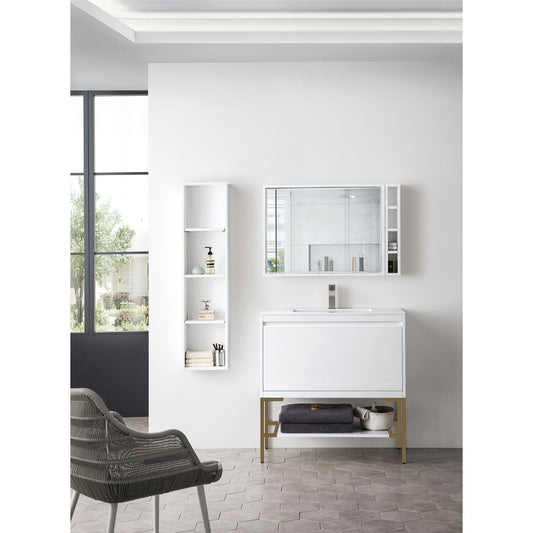 Milan 35.4" Single Vanity Glossy White Radiant Gold w/Glossy White Composite Top