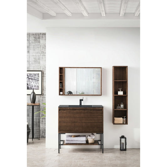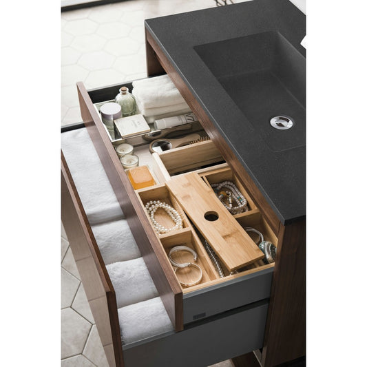 Milan 47.3" Single Vanity, Mid Century Walnut w/Charcoal Black Composite Top