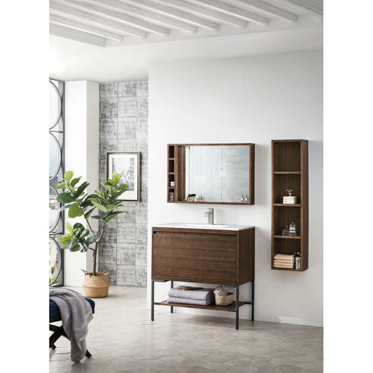 Milan 35.4" Single Vanity Mid Century Walnut Black w/Glossy White Composite Top