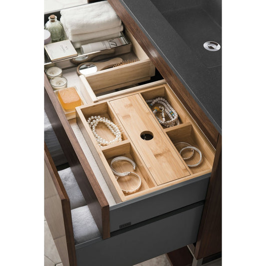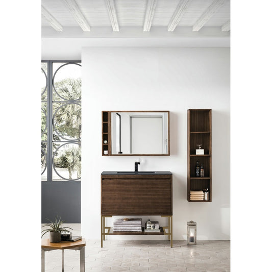 Milan 35.4" Single Vanity Mid Century Walnut Radiant Gold w/ Black Composite Top