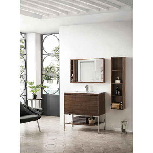 Milan 35.4" Single Vanity Mid Century Walnut White w/ White Composite Top