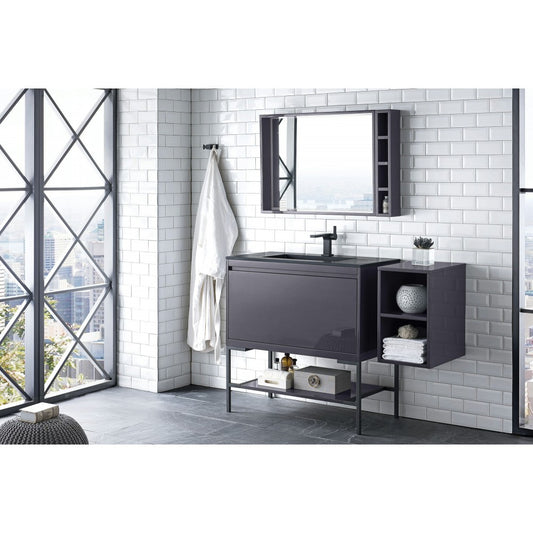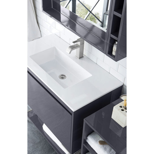 Milan 35.4" Single Vanity Modern Gray Glossy Black w/Glossy White Composite Top