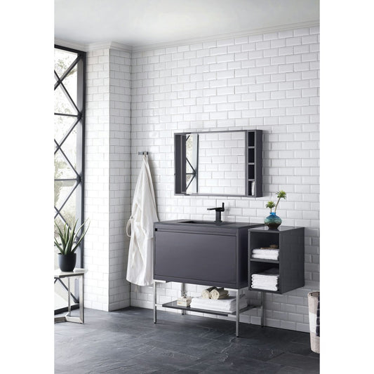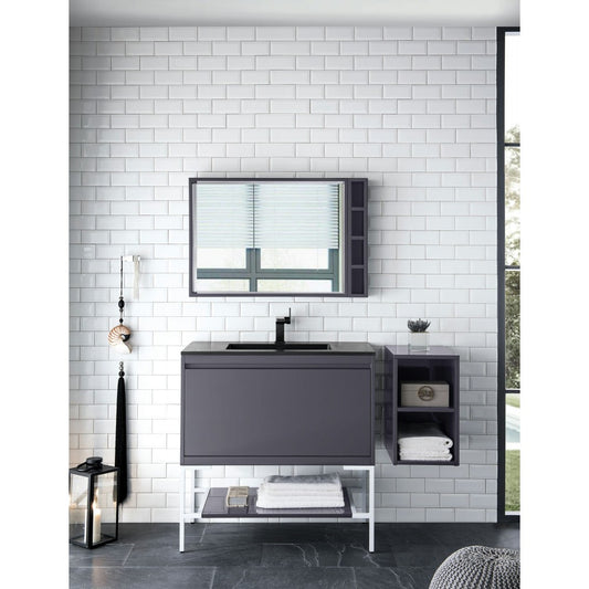 Milan 35.4" Single Vanity Modern Gray Black w/Charcoal Black Composite Top