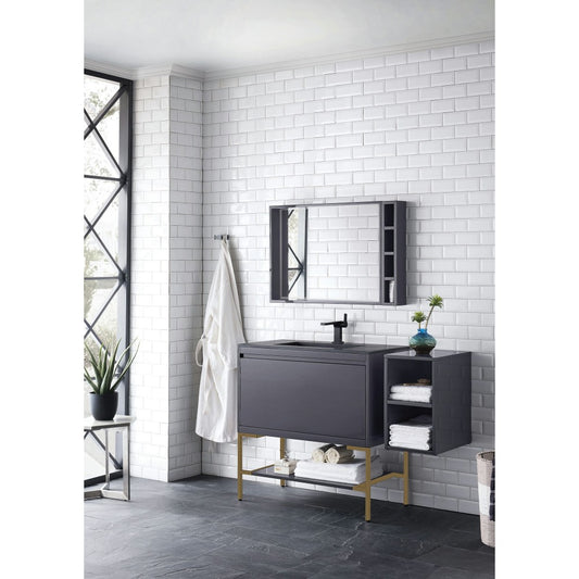 Milan 35.4" Single Vanity Modern Gray Radiant Gold, Charcoal Black Composite Top
