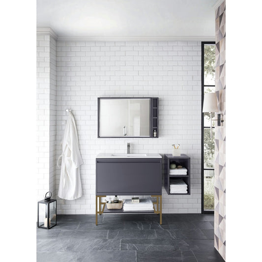 Milan 35.4" Single Vanity Modern Gray Radiant Gold w/ White Composite Top