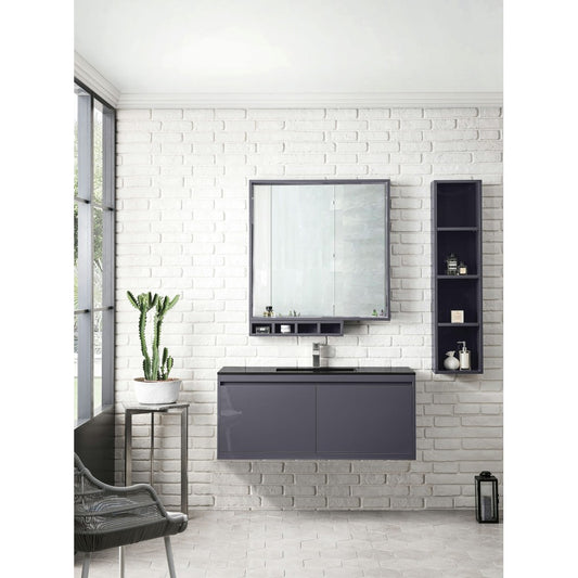 Milan 47.3" Single Vanity, Modern Gray Glossy w/Charcoal Black Composite Top