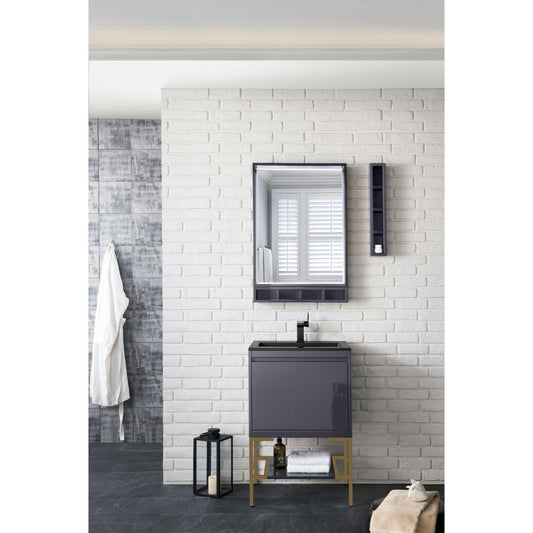 Milan 23.6" Single Vanity Modern Gray Radiant Gold,Charcoal Black Composite Top