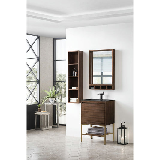 Milan 23.6" Single Vanity Walnut Radiant Gold w/Charcoal Black Composite Top