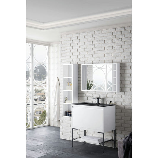 Milan 31.5" Single Vanity Cabinet, Glossy White w/Charcoal Black Composite Top