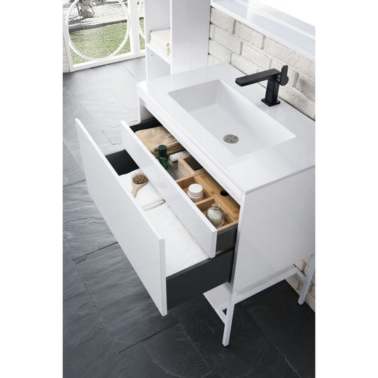 Milan 31.5" Single Vanity Glossy White Glossy White w/Glossy White Composite Top