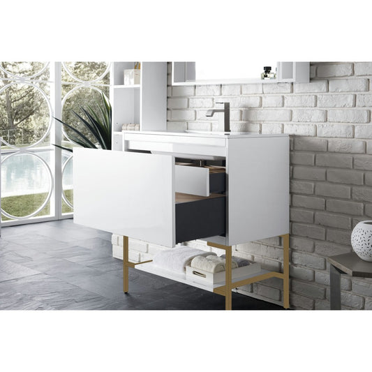 Milan 31.5" Single Vanity Glossy White Radiant Gold w/Glossy White Composite Top