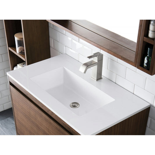 Milan 31.5" Single Vanity, Mid Century Walnut w/Glossy White Composite Top