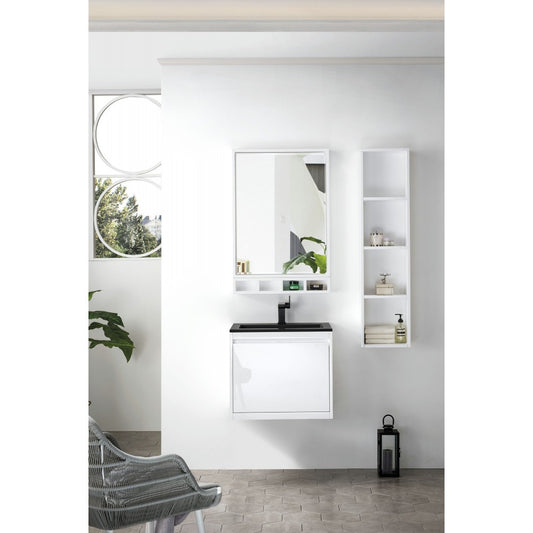 Milan 23.6" Single Vanity Cabinet, Glossy White w/Charcoal Black Composite Top