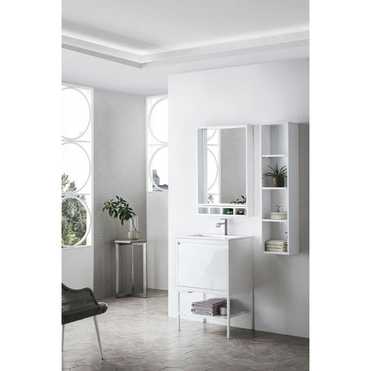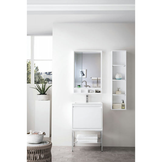 Milan 23.6" Single Vanity Cabinet, Glossy White w/Glossy White Composite Top
