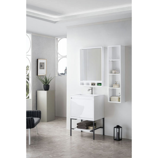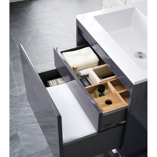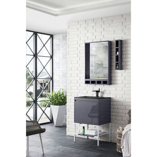 Milan 23.6" Single Vanity Modern Gray Glossy Black w/Glossy White Composite Top