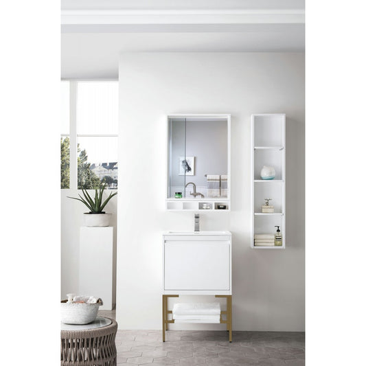 Milan 23.6" Single Vanity Glossy White Radiant Gold w/Glossy White Composite Top