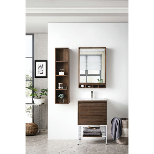 Milan 23.6" Single Vanity Mid Century Walnut White w/ White Composite Top